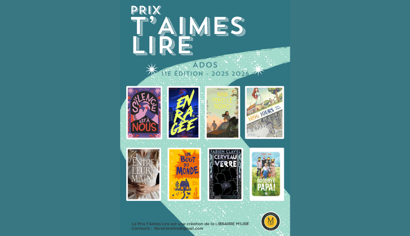 Ce prix est organisé par la librairie M'Lire . Le Prix T'AIMES LIRE est un prix littéraire destiné aux adolescents qui a pour but de faire découvrir...